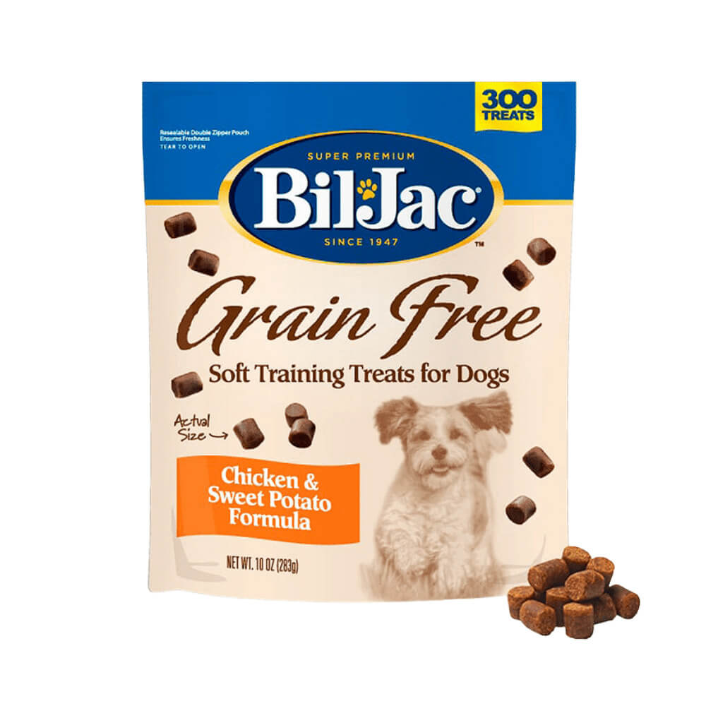 Bil-Jac® Grain Free Soft Training Treats for Dogs, es un delicioso snack para perros adultos libre de granos, hecho con pollo de verdad y camote, un sabor que a los perros les encanta. El tamaño pequeño de la croqueta es ideal para entrenar con recompensas, también para perros de razas pequeñas. Una alternativa libre de granos que permite que tu perro se destaque, no solo no tiene granos sino que tampoco está hecho con harina de gluten o grasa pulverizada.