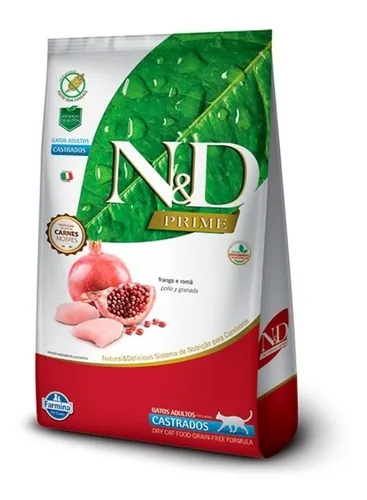 N&D Prime Feline Castrado es una alimento completo y balanceado para gatos adultos castrados. Contiene proteína de pollo de alta calidad y un óptimo equilibrio de minerales. Está enriquecido con frutas y legumbres, y esencias botánicas como Té Verde, Alfalfa, Aloe Vera y Psyllium.