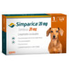 Simparica® es un antiparasitario externo de vía oral para el tratamiento y control de infestaciones por pulgas, garrapatas y sarna. Puede usarse como parte de una estrategia de tratamiento para el control de la Dermatitis por Pulgas (DAPP). Indicado para perros de 8 semanas o más. Duracion de 35 días. No usar en felinos.